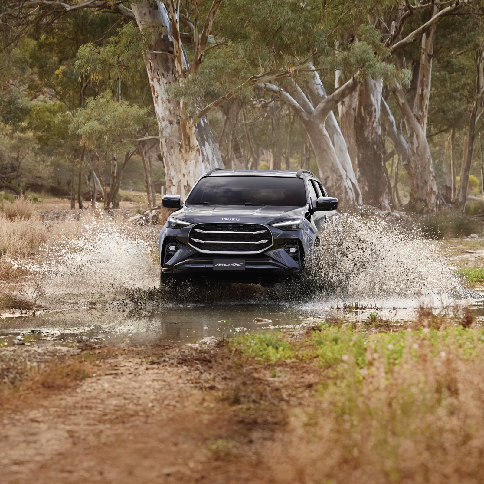 The driving performance of the ISUZU MU-X has been enhanced through a series of upgrades, such as an electronic 4WD shift system, an impressive 800mm water-wading capability, and a steel underbody guard that gives you confidence to tackle challenging terrains.