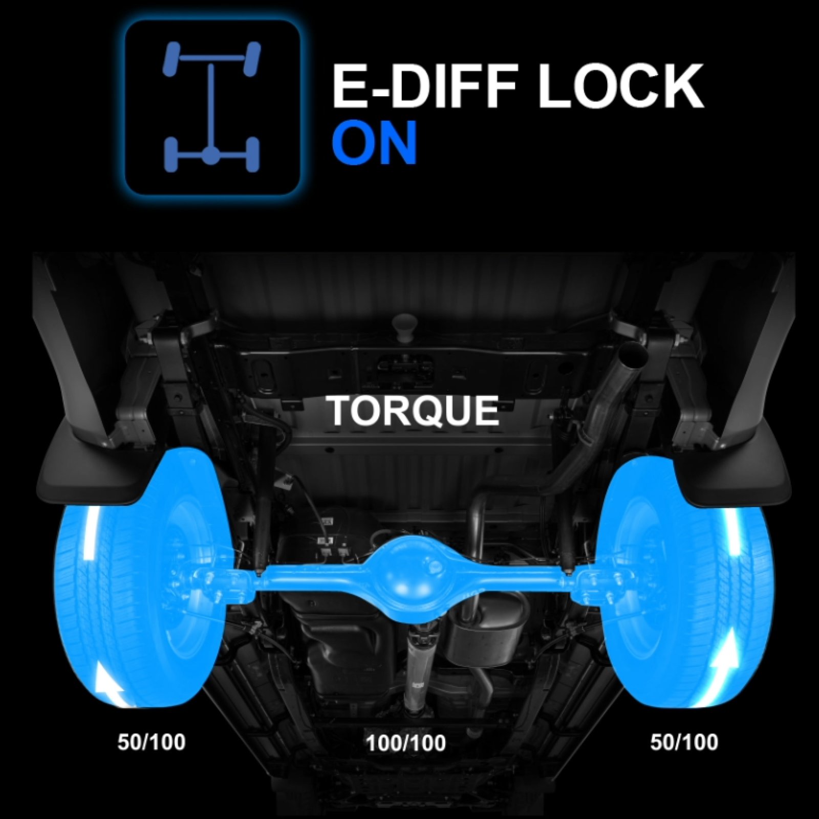 The tilt display feature and the drivetrain status indicator, when switching to 4×4 mode, improve vehicle control for the ISUZU D-MAX. When conquering off-road routes, the ISUZU D-MAX truly shines with outstanding performance and remarkable durability, thanks to the Rough Terrain mode combined with the rear differential lock and electronic 4WD shift system.