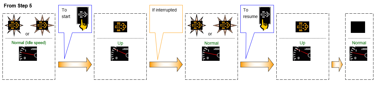 - The DPD manual regeneration indicator lamp (amber) will stop blinking and stay on, while the engine speed will automatically increase to start regeneration.